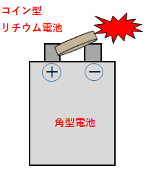 コイン型リチウム電池やボタン電池は、パッケージから出した状態で、他の電池や金属類と接触することで、これら同士で回路が形成されると、ショートして破裂し、火災に発展する危険性があります。また、コイン型リチウム電池やボタン電池を大量に保管することでも、電池同士で回路が形成され、同様の火災が発生する危険性があります。