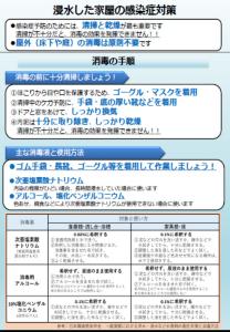 家屋等が浸水した場合、次のとおり洗浄及び衛生対策を行ってください。