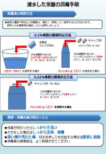 下水道には汚水が混入している場合がありますので、汚水によって家屋等が浸水した場合は、洗浄により十分に汚れを除去し、よく乾燥させてから消毒してください。