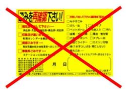 黄色いシールが貼られてごみが取り残された場合、持ち帰って正しく分別し直した後、シールに×印を書き、次のそのごみの収集日に出し直してください。